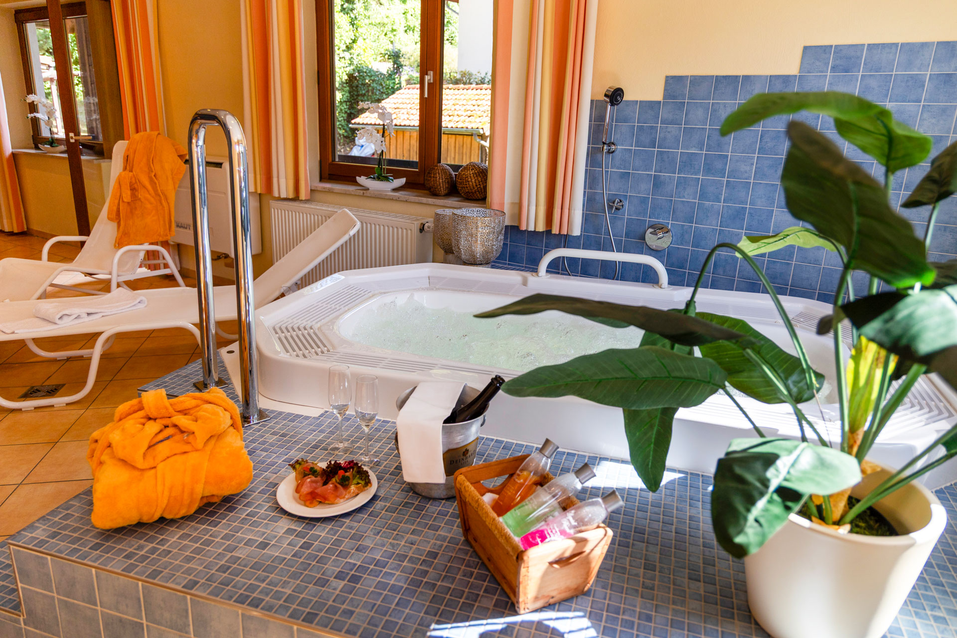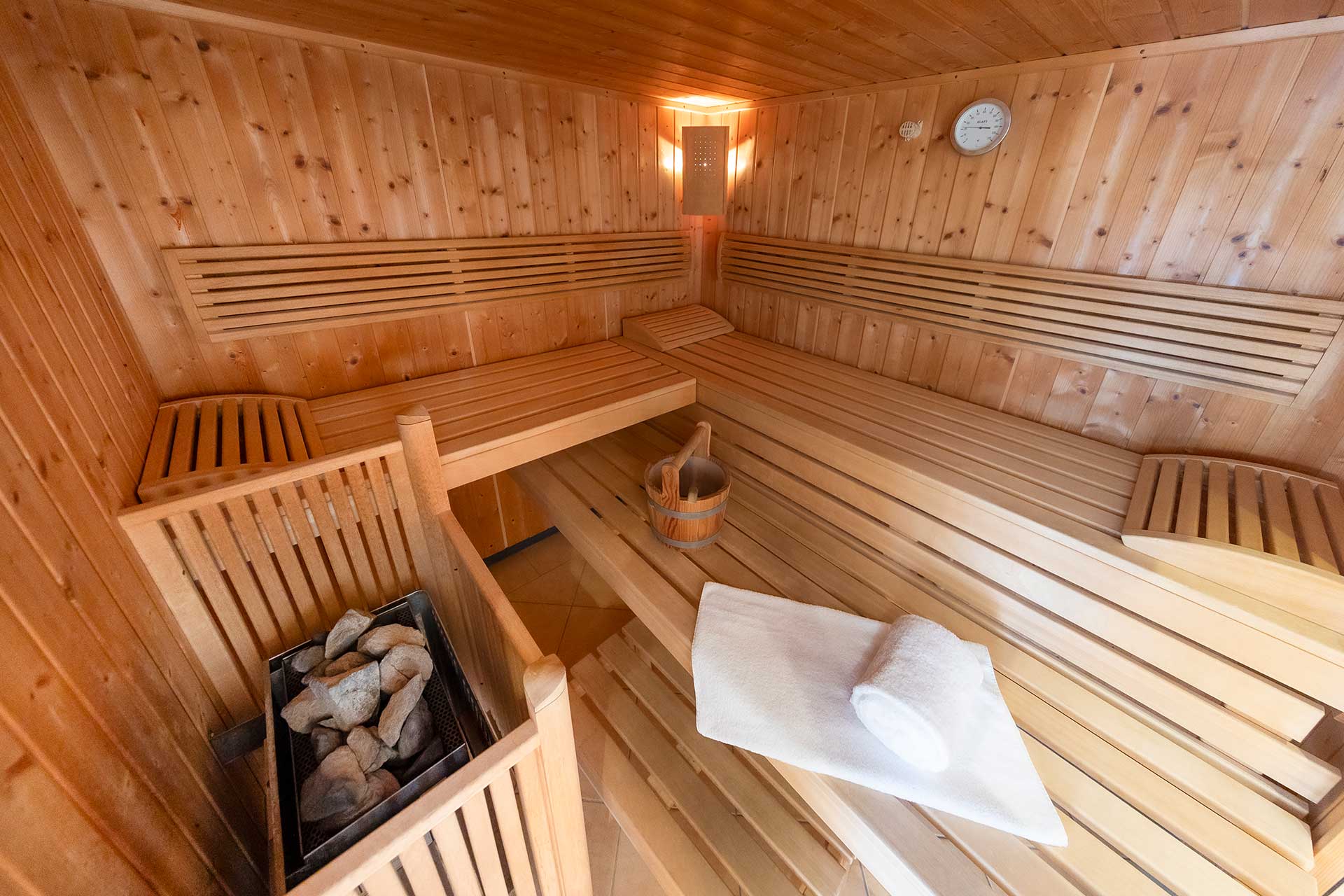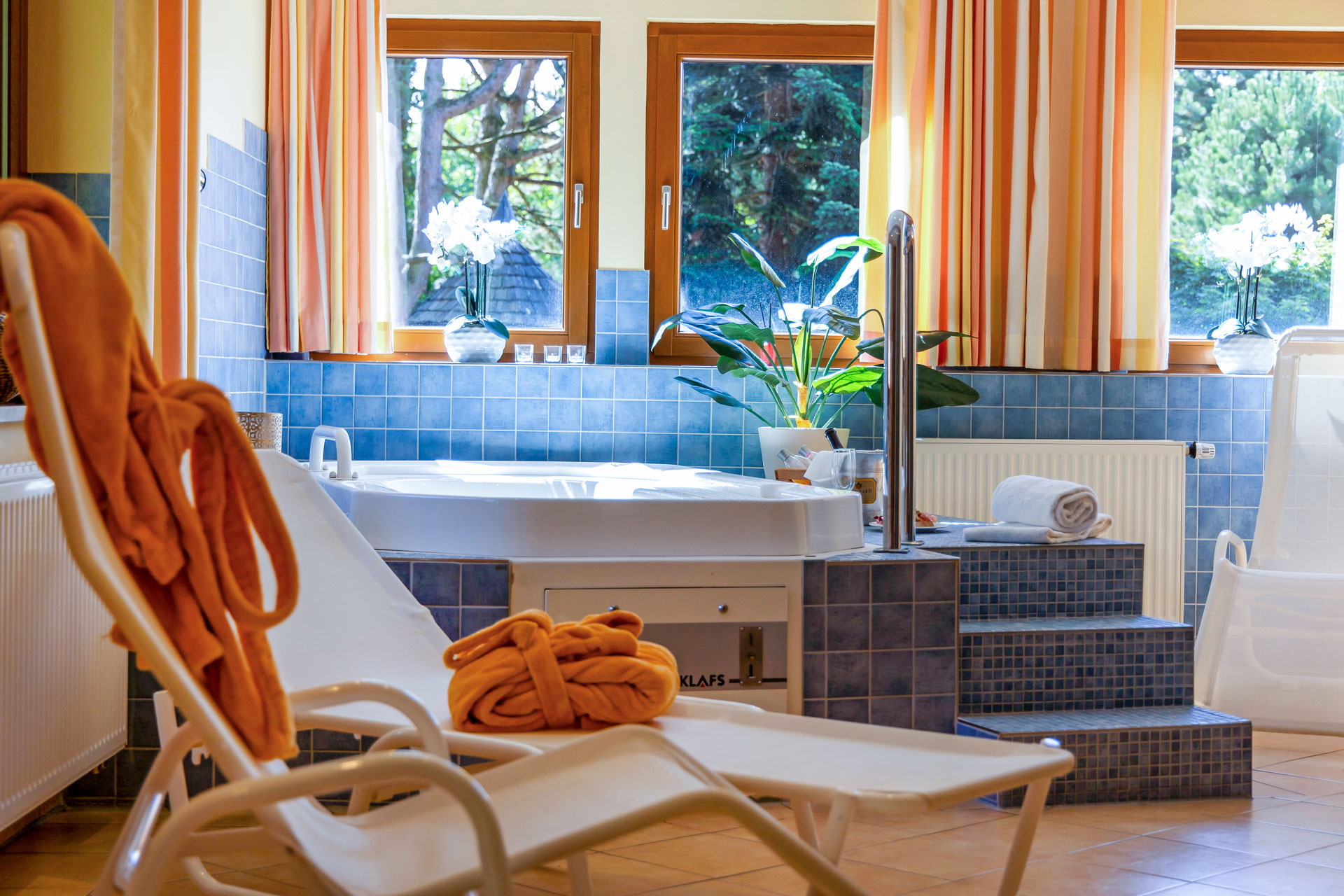 Unser Haus verfügt über einen Wellnessbereich mit Sauna, Whirlpool und Sonnenbank – der perfekte Ort, um Körper und Geist zur Ruhe kommen zu lassen.